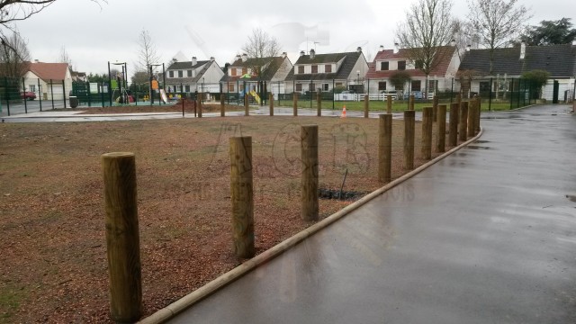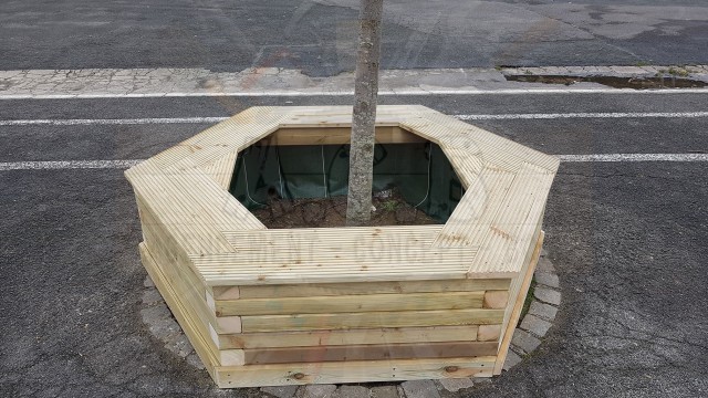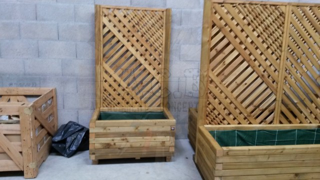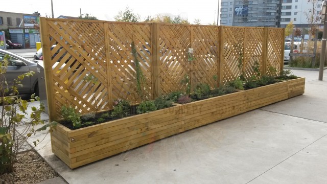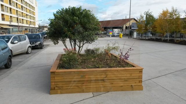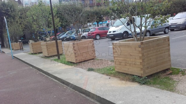 Fabrication de jardinières afin de délimiter les parkings (pouvant également être fait avec des portiques, voir rubrique), création pour aménager une place piétonne ou cacher les poubelles communales, ou habillage d’une ancienne jardinière béton.